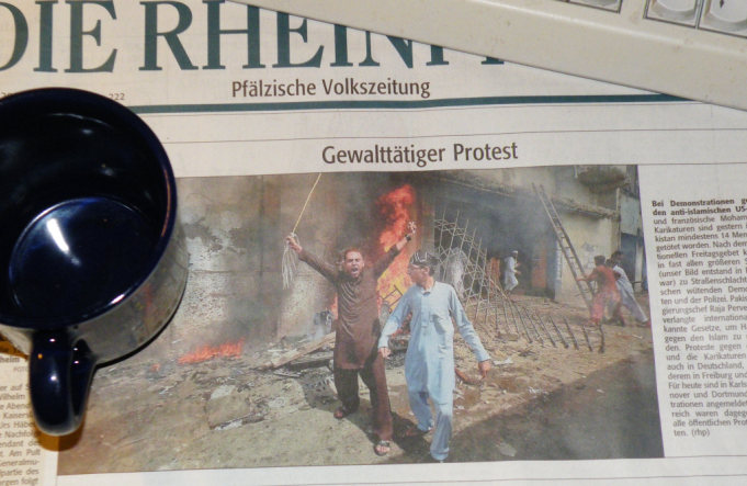 Dabei geben die kreischenden Brandstifter und Mörder ein Bild ab, das jenen in den von ihnen als Anlass für ihre Handlungen genannten Filme und Zeichnungen bemerkenswert ähnlich ist. Zumindest die Mohammeds unter ihnen sind also lebende Mohammedkarikaturen und beleidigen mit ihrem Verhalten gerade jenen Namenspatron, dessen Ehre sie zu schützen vorgeben. [..] [Quelle: heise.de / Peter Mühlbauer]