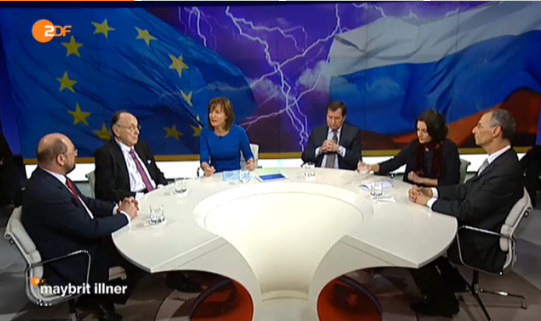 Anmerkung zur Sendung von Maybrit Illner: Zwei Dinge erscheinen besonders gravierend. Zum einen wird völlig ignoriert, in welch großem Umfang die Proteste auf dem Maidan durch den Westen initiiert, finanziert, die Gewalt provoziert und die Eskalation inklusive des Staatsputsches herbeigeführt wurde. Denn alles war mit viel Geld, von langer Hand vorbereitet. Diese Ignoranz gipfelte in der Aussage des EU-Präsidenten Schulz (SPD), wonach er die Putschregierung in Kiew als legitim ansieht, denn diese sei vom Parlament rechtmäßig eingesetzt worden. Entweder er lügt, oder er ist mit einer eklatanten Wahrnehmungsschwäche behaftet. Beides ist mit seinem Amt unvereinbar .
